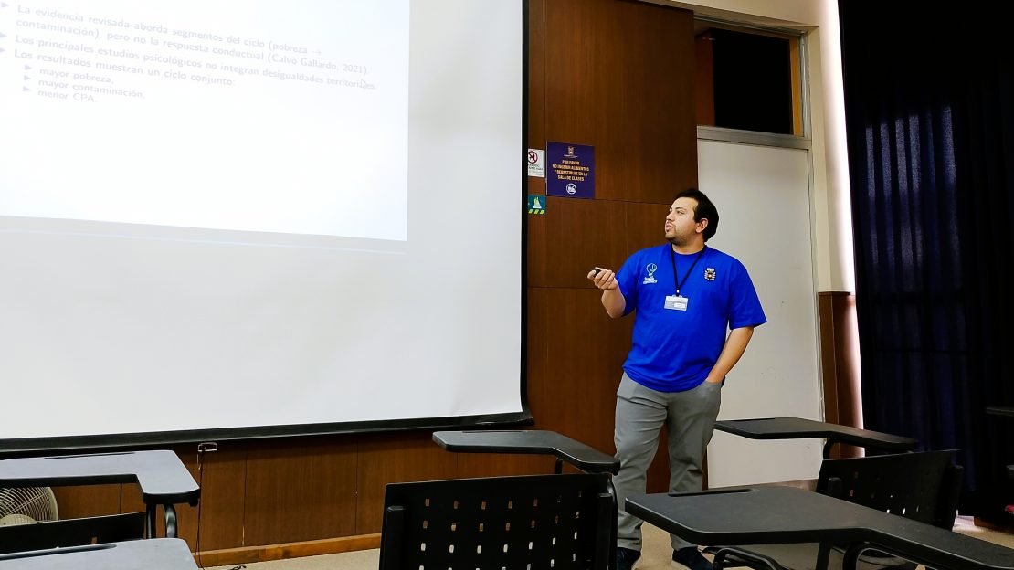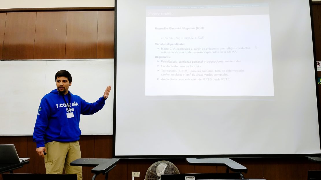 En esta edición, el Magíster en Economía Aplicada de la Universidad del Bío-Bío (MagEA-UBB) estuvo representado por primera vez por los estudiantes de la cohorte 2024 Gian Dellarossa Reyes y Gustavo Escobar Santibáñez, quienes participaron como expositores. Los estudiantes presentaron la ponencia “Análisis ENMA–RETEC–SINIM: Comportamiento proambiental, contaminación del aire y territorio en Chile”, estudio desarrollado en la asignatura electiva Economía Ambiental y de los Recursos Naturales, dictada por el Dr. Mauricio Leiva y el académico Francisco Hernández, co-autores de la investigación.